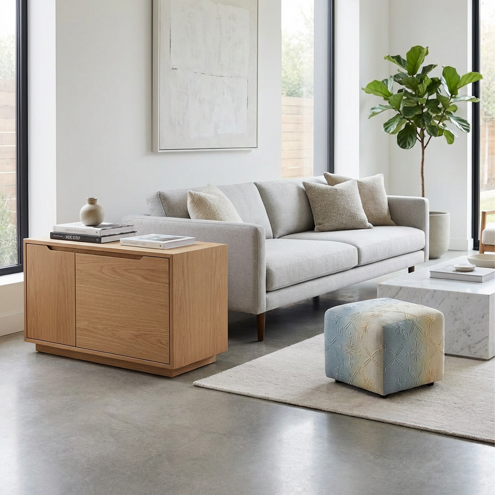 - Cube pouf ottoman for flexible seating and styling
